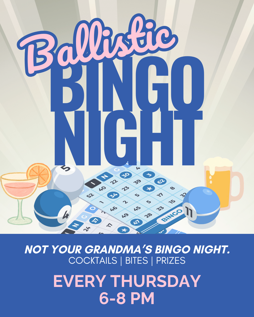 Looking for bingo in Nashville that’s anything but ordinary? Join us every Thursday night at Playdate for Ballistic Bingo, the wild, not-your-grandma’s bingo night packed with prizes, drinks, and nonstop entertainment. Between bingo rounds, our energetic Bingo Jockeys keep the crowd laughing with spontaneous bar games like limbo, trivia, drawing challenges, and more. With awesome prizes, a lively crowd, and a chance to win the jackpot, Ballistic Bingo at Playdate is one of the most fun Thursday night events in Nashville. Come ready to play, compete, and have a blast.